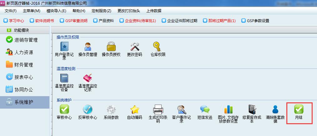 系統維護—設置月結參數—月結操作—查看已月結月份