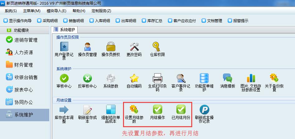 系統維護—設置月結參數—月結操作