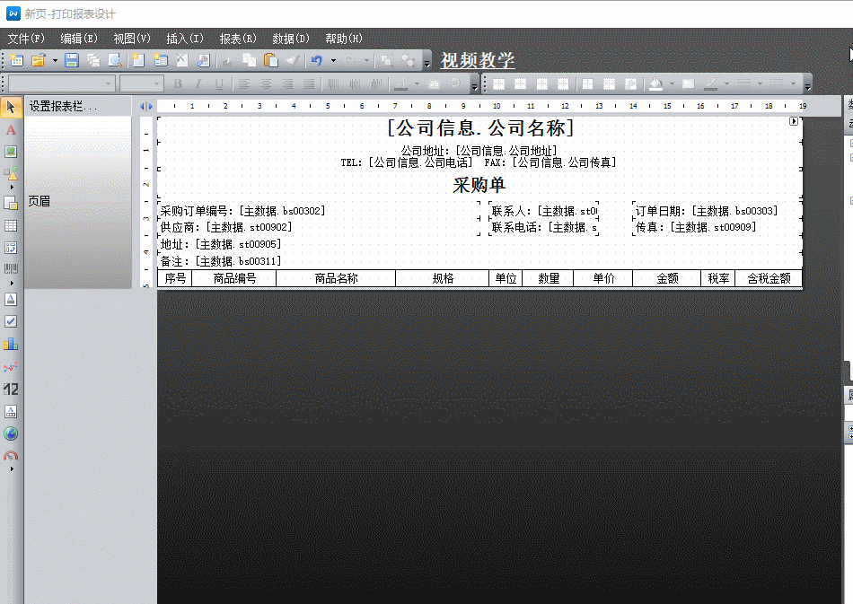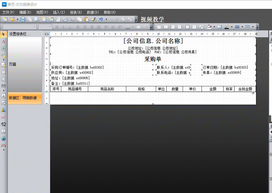 新增的報表是空白的,一個完整的報表一般由頁眉、數據區和報表合計區組成。
