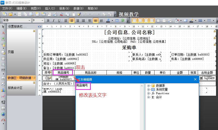1、打開修改報表界面