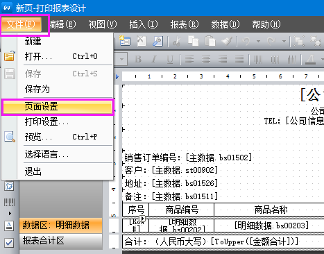 報表維護——修改報表——左上角點擊“文件”——點擊頁面設置——調整紙張大小,縱/橫向,頁邊距。