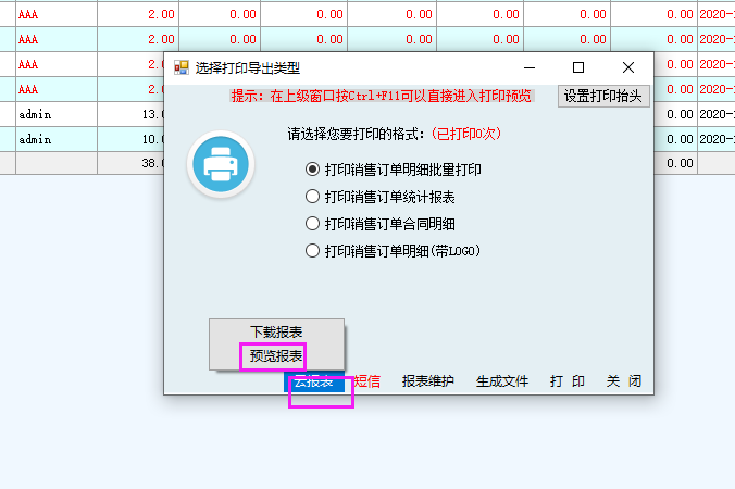 1、打開導(dǎo)出打印——云報表
