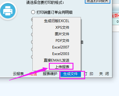 3、下載之后,回到導(dǎo)出打印界面,選擇剛剛的報表,點(diǎn)擊生成文件,然后點(diǎn)擊上傳(進(jìn)銷存是點(diǎn)擊報表維護(hù)——上傳報表)。不點(diǎn)擊上傳的話可能別的電腦不會更新到這個報表。