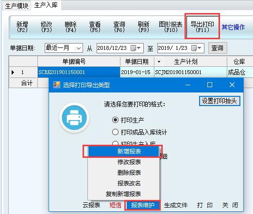 1、點(diǎn)擊菜單欄導(dǎo)出打印-報(bào)表維護(hù)-新增報(bào)表