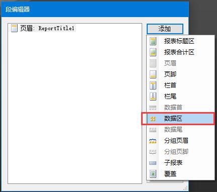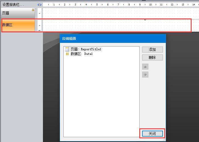 4、點(diǎn)擊添加-數(shù)據(jù)區(qū),然后可以看到頁(yè)面多了一個(gè)數(shù)據(jù)區(qū),然后點(diǎn)擊關(guān)閉