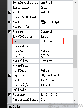 ③文本框的Height:文本框格子的高度。