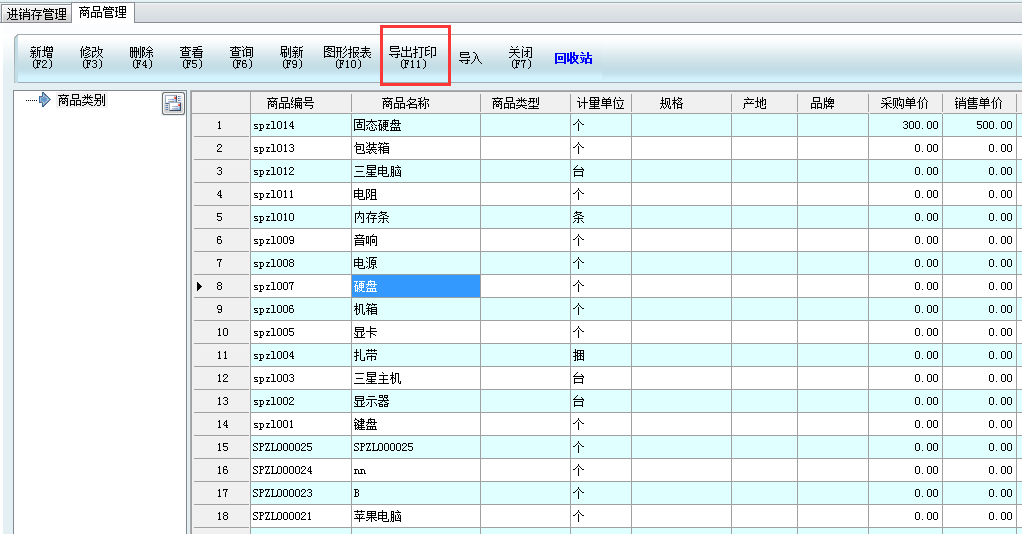 1、打開商品管理,在菜單欄,點擊導(dǎo)出打印