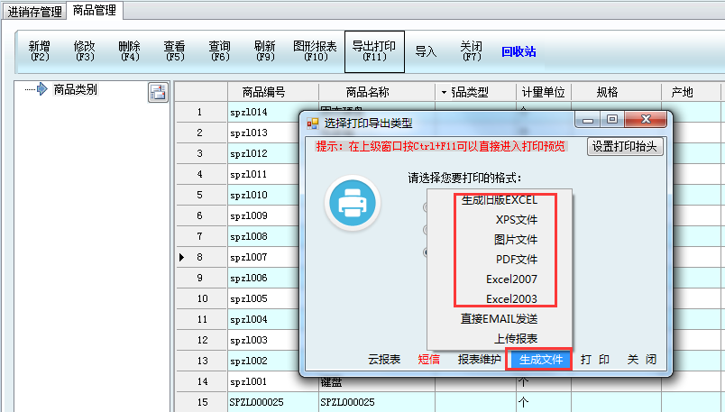 軟件許多功能模塊都可以導(dǎo)出數(shù)據(jù),這里以商品管理導(dǎo)出數(shù)據(jù)為例