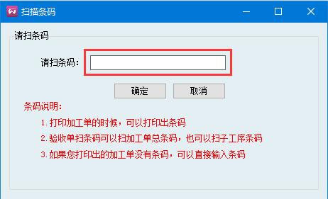 4)然后彈出掃描條碼的窗口,用掃描槍掃描加工單條碼,即可快速領(lǐng)料。