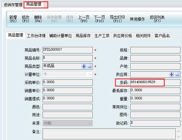 1)先在進(jìn)銷存管理-商品管理中,錄入商品的條碼
