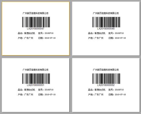 2)打印出來的條碼如下圖,可把條碼貼在對(duì)應(yīng)的產(chǎn)品上