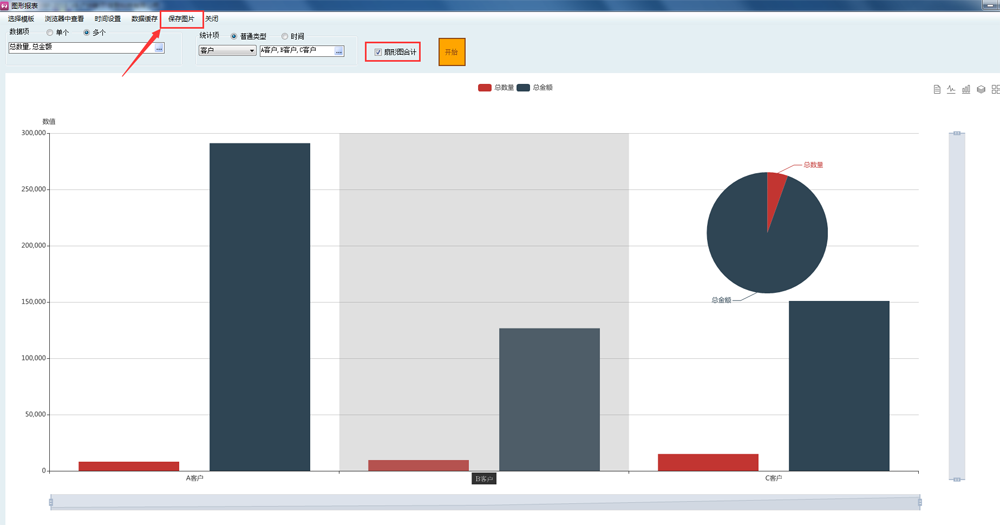 5、勾選扇形圖合計后生成的圖片如下,最上面保存圖片可以把分析的圖標生成PNG圖片。
