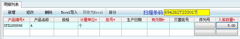 使用 采購(gòu)訂單/其他入庫(kù) 功能入庫(kù),在掃描條碼一欄用掃碼槍掃碼,隨后下方數(shù)量會(huì)隨同一產(chǎn)品累加,所有內(nèi)容均顯示在對(duì)應(yīng)的格子中,可判斷為掃碼正常。