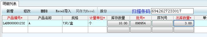 與上述入庫(kù)操作基本相同,使用 銷售訂單/其他出庫(kù) 功能出庫(kù),掃碼后商品會(huì)自動(dòng)帶出明細(xì)列表中。