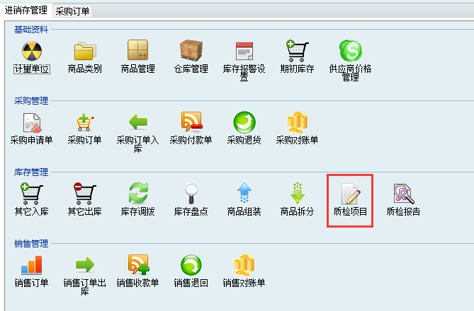 2、先在質量管理模塊-質檢項目中添加質量細項