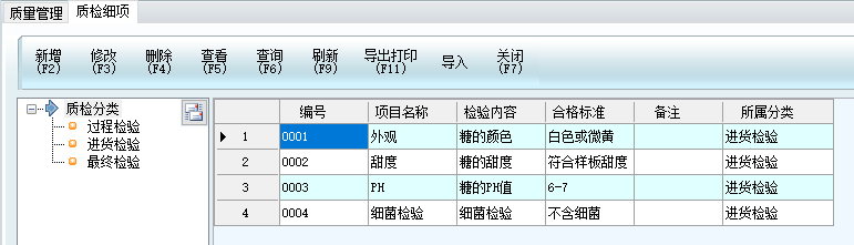 檢驗過程假如有很多的檢查指標或者檢查項目,可在質檢前先添加上檢驗細項。