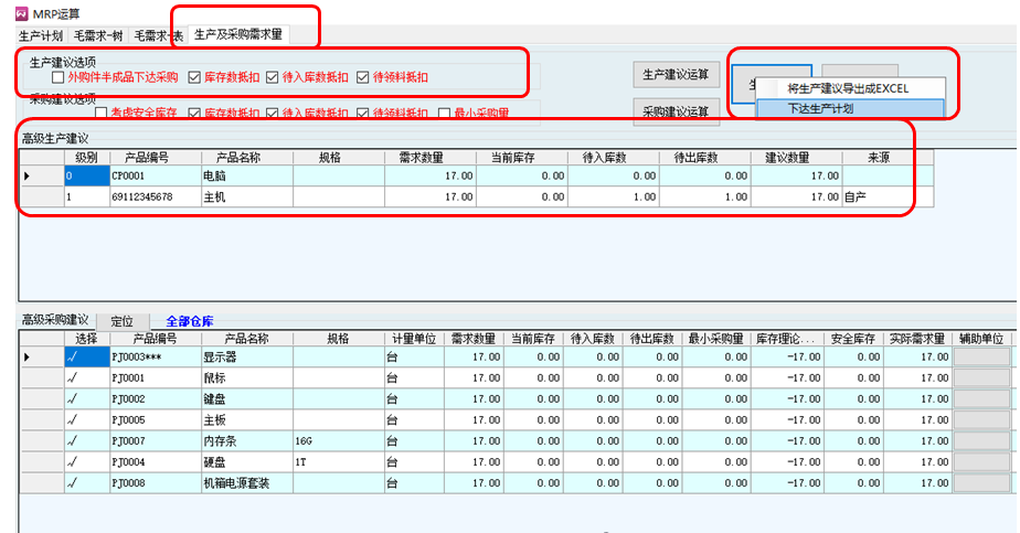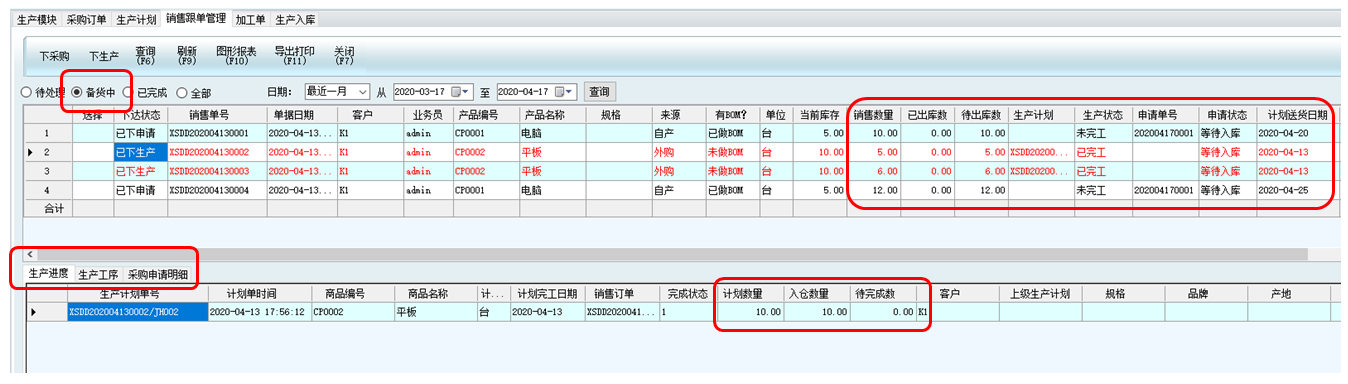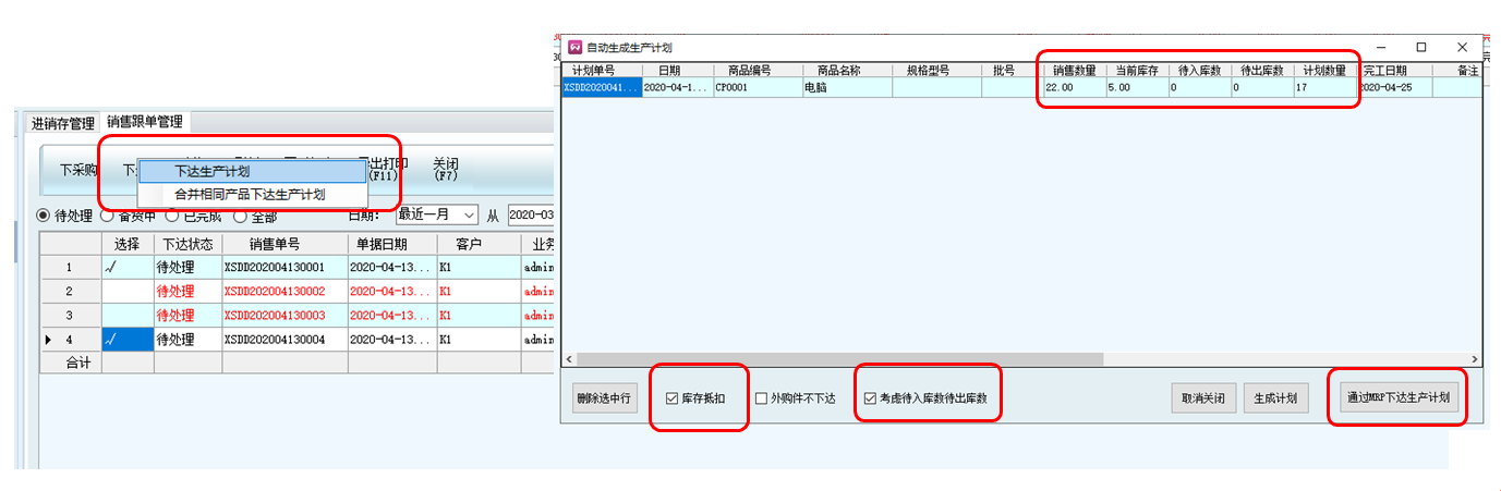 適用于每個銷售商品單獨下達,不要多選,當多選的時候,不要勾選庫存抵扣和考慮待入庫待出庫數!