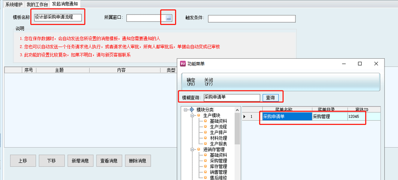 在系統(tǒng)維護(hù)-消息模板中,可以添加多個(gè)模板,先添加條件一