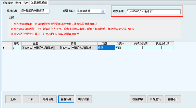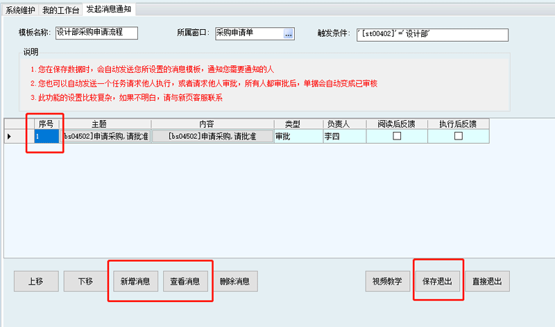 5. 如果一個(gè)人審批,只需要添加一條消息,如果多個(gè)人審批,那么可以繼續(xù)新增消息。