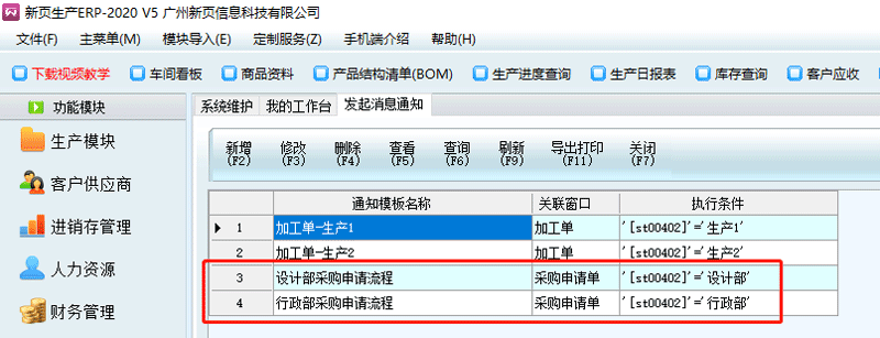 8.保存后,便可以在列表上查看該模板了,然后再繼續(xù)添加申請單模板2,觸發(fā)條件為: