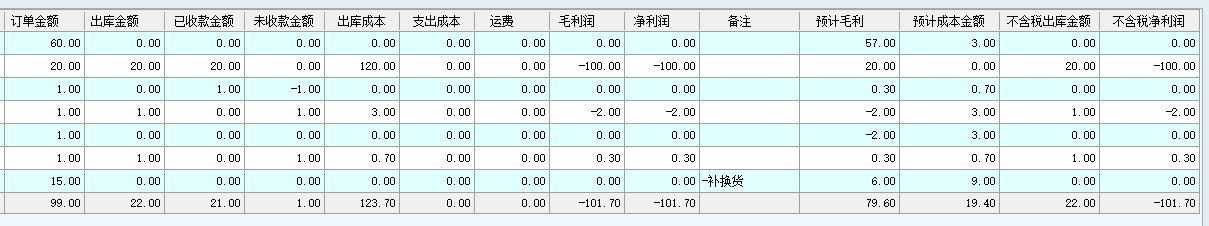 凈利潤=毛利潤-資金支出-運費 預計成本金額=銷售數量*商品采購單價 預計毛利=銷售訂單金額-預計成本金額