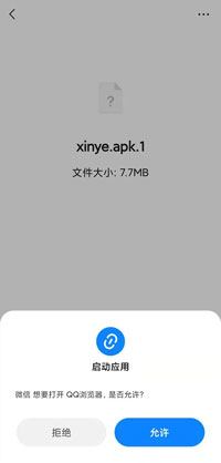 方法1:先下載安裝QQ瀏覽器,然后在手機微信上選擇用其他應用打開,選擇QQ瀏覽器打開該apk文件并安裝。
