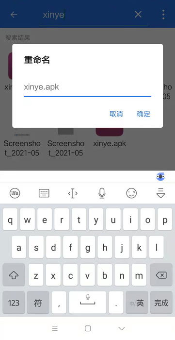 方法2:在手機自帶的文件管理功能里,搜索“xinye”,搜尋剛才在微信里的apk文件。