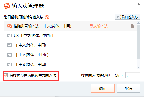 勾選將搜狗設置為默認中文輸入法