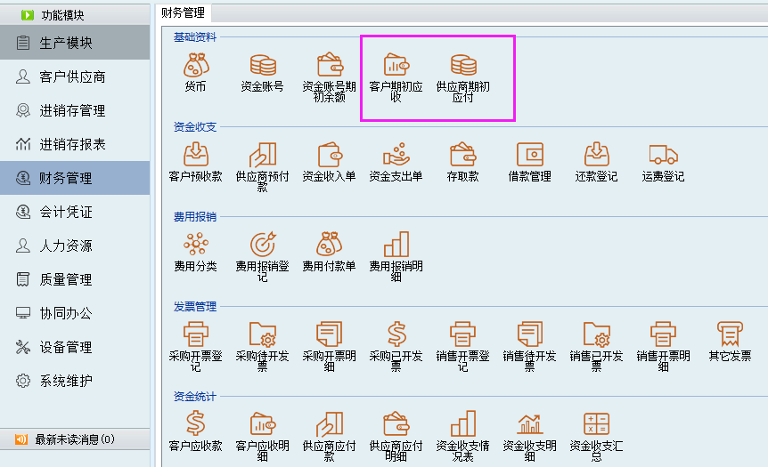 【財務管理】-【客戶期初應收款】和【供應商期初應付】