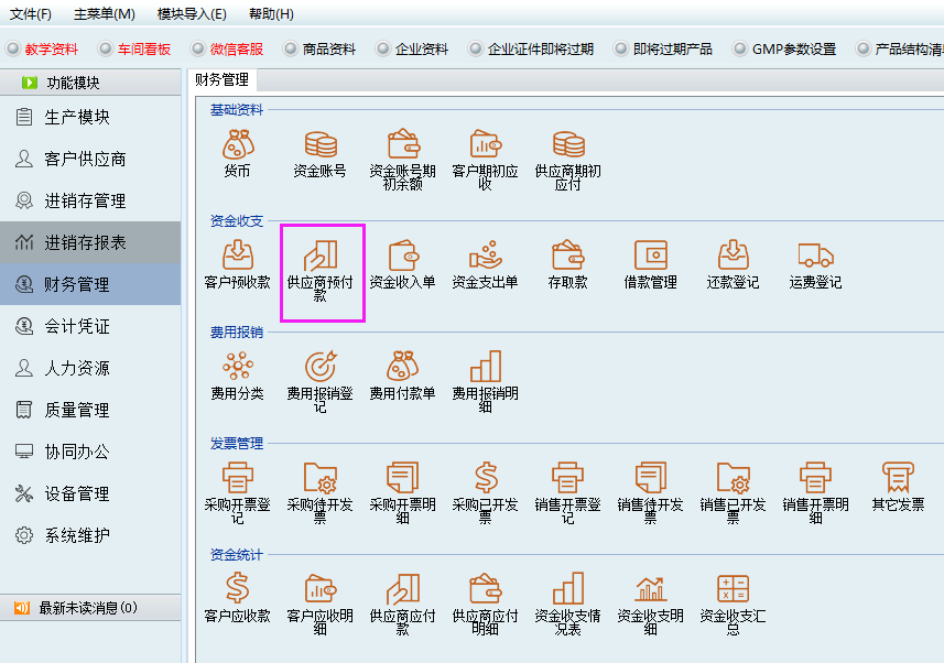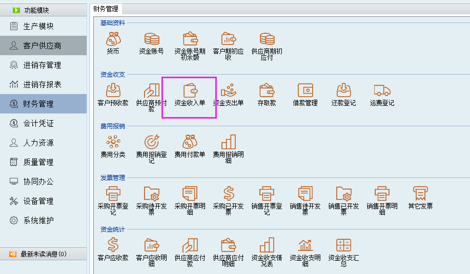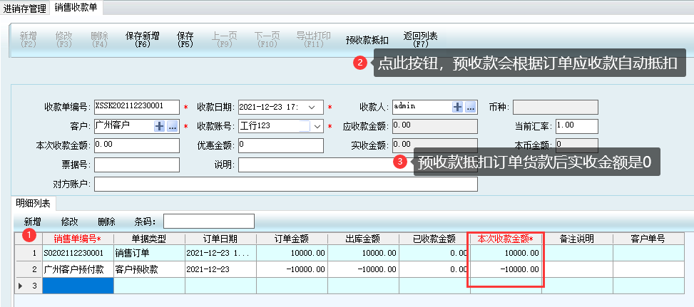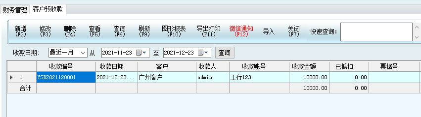①收到預收款:還沒下達銷售訂單,先收到客戶預付款,在財務管理模塊里面做“客戶預收款”,比如預收貨款10000元