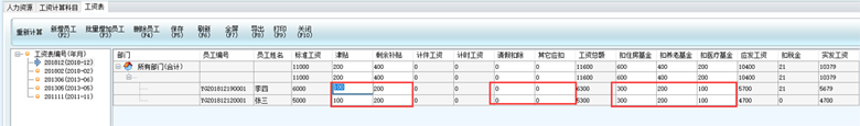 PS:有些用戶反映,明明已經添加員工工資表,再次進入工資表,選擇工資編號以后,仍然沒有看到已添加的員工工資表,這是因為錄入員工資料時,沒有給員工選擇部門,當選擇了部門之后,工資表就能顯示了。