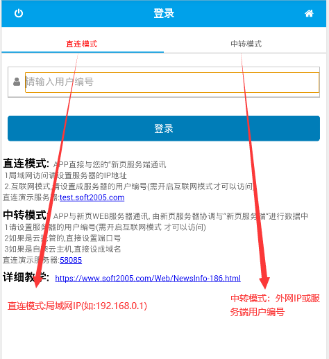 ① 安卓版的PDA分為兩種連接方式:1.直連模式 2.中轉模式