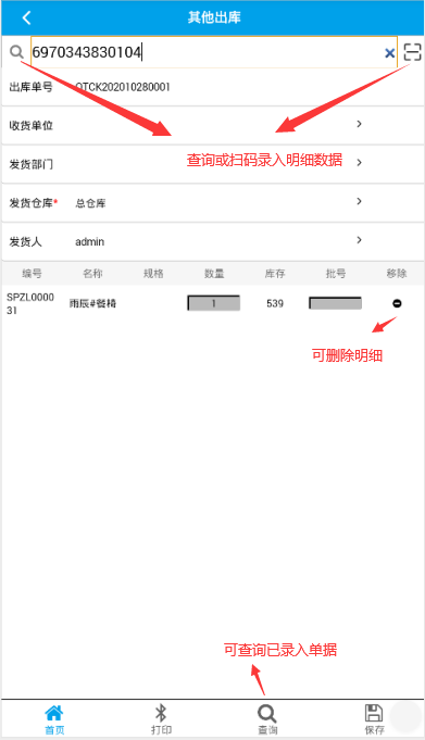 其它功能模塊的操作類似以上的操作,下面就不作贅述,以下總結一下出入庫各單據需要掃描的條碼類型。
