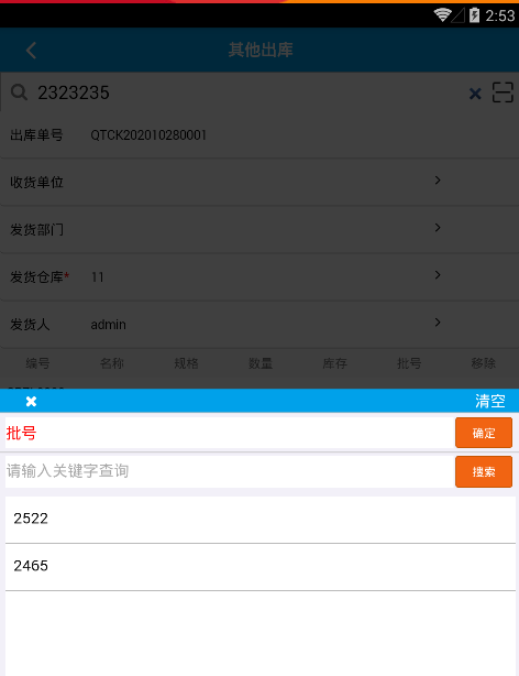2、點擊上方圖片中的數量,就可以在彈窗中錄入出庫數量。