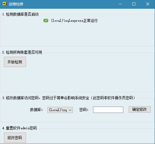 安裝完成后打開服務(wù)端----幫助----故障檢測,修改數(shù)據(jù)庫密碼。