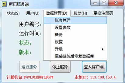 數(shù)據(jù)庫(kù)版本出錯(cuò)、重裝系統(tǒng)等因素造成賬套訪問(wèn)失敗(通過(guò)幫助---故障檢測(cè)---檢查所有賬套是否可用),可將賬套數(shù)據(jù)導(dǎo)出成演示數(shù)據(jù),導(dǎo)出路徑在新頁(yè)文件夾—server—test