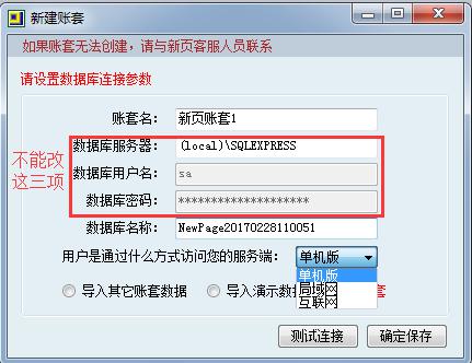 賬套名和數(shù)據(jù)庫(kù)名稱(chēng)可以修改,訪問(wèn)方式根據(jù)實(shí)際選擇單機(jī)版,局域網(wǎng),互聯(lián)網(wǎng)。測(cè)試連接數(shù)據(jù)庫(kù),提示連接成功,確定保存。提示連接失敗請(qǐng)咨詢(xún)客服。