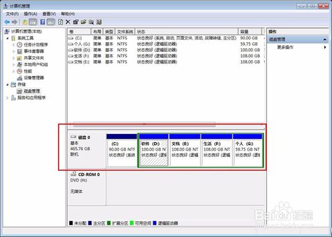 2、--->“磁盤管理”,這時窗口中所示的“磁盤0”即我們電腦自帶的那塊硬盤,我們接下來的操作都是針對“磁盤0”進行的