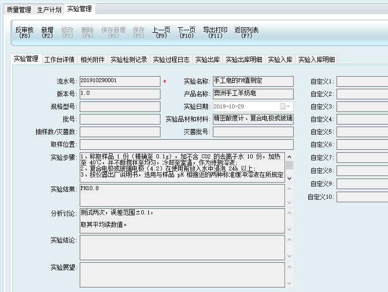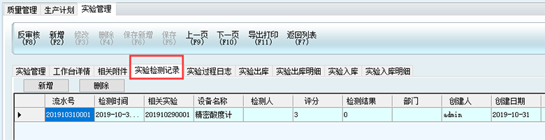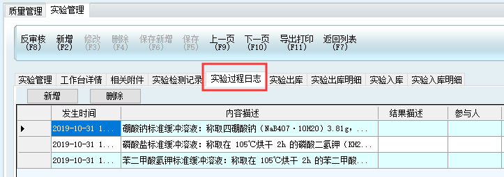 1、點擊質量管理-實驗管理,根據實際需求填寫實驗名稱、實驗步驟、實驗結果等。