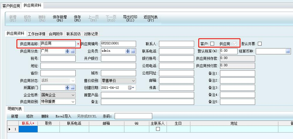 ①供應商名稱不能重復,如果之前有錄入并且刪除了,需要在回收站里徹底刪除才能重新錄入。