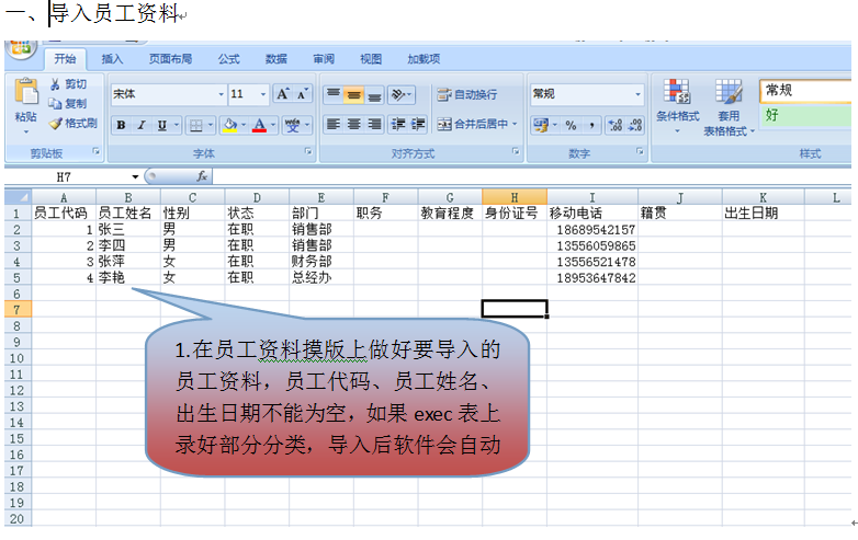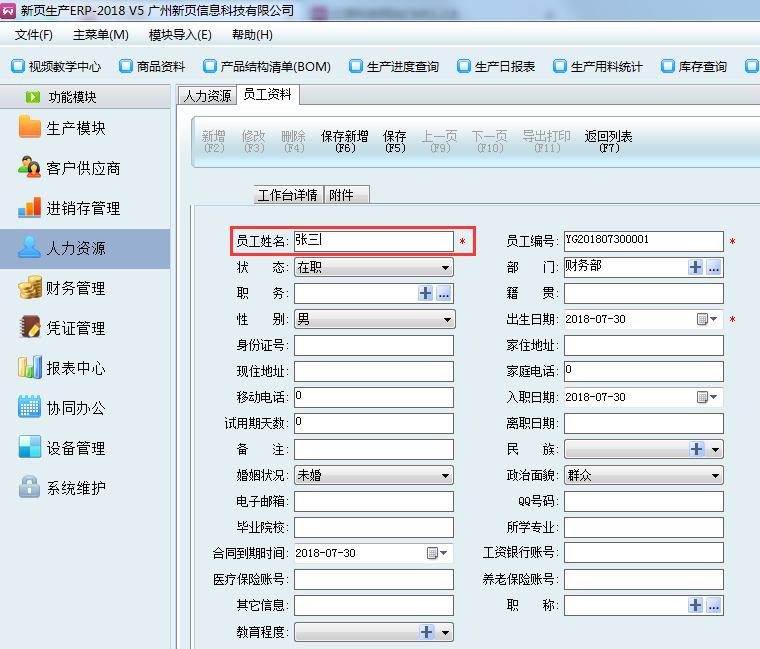 手動錄入員工資料,*號的內容為必填項目。