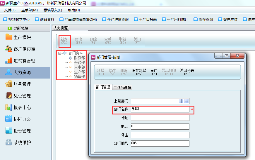 在錄入員工資料之前,一般會先建立部門資料