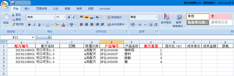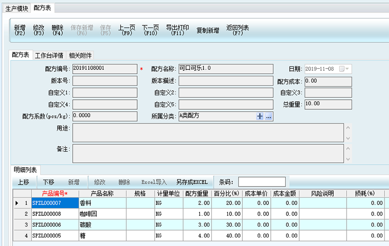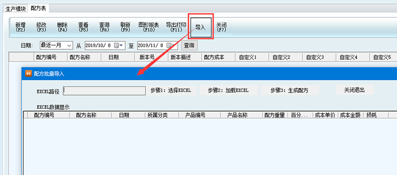 2、打開生產模塊-配方表,點擊菜單欄導入按鈕,彈出窗口。