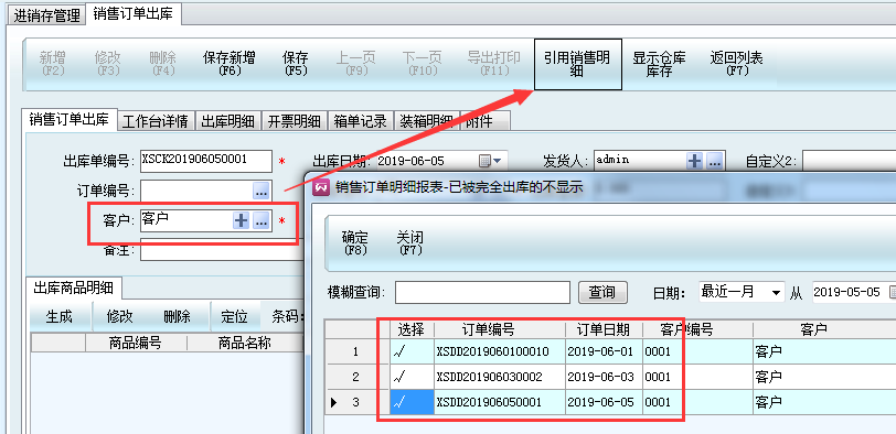 選擇客戶—引用銷售明細—批量選擇銷售訂單—保存審核