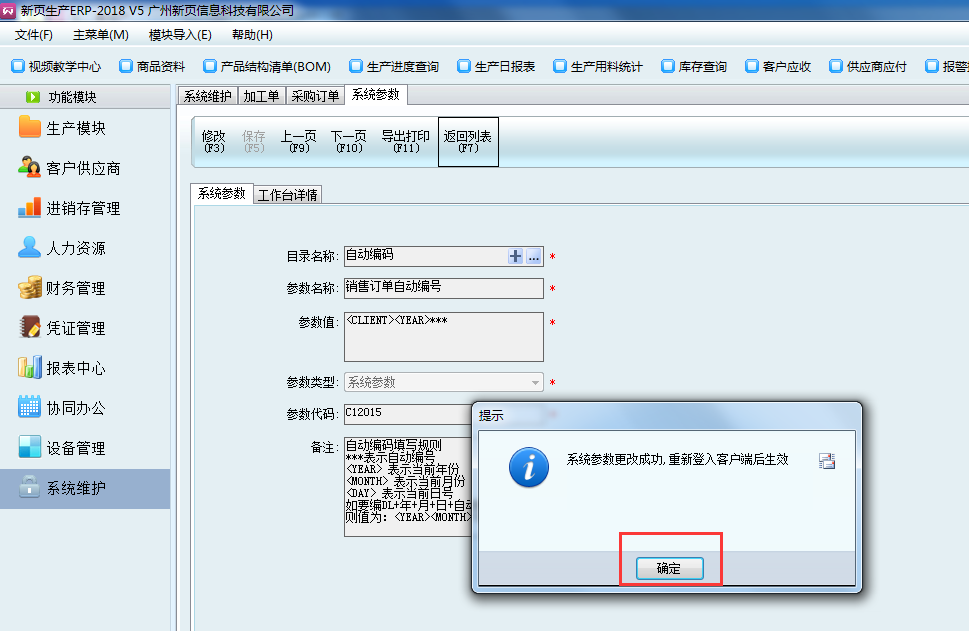 2、參數值改為*** (表示客戶編號、表示年、***表示自動編號),然后點擊保存,退出系統,重新登錄才生效。