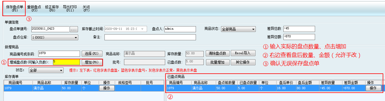 * 盤點后的單據無法修改、刪除。