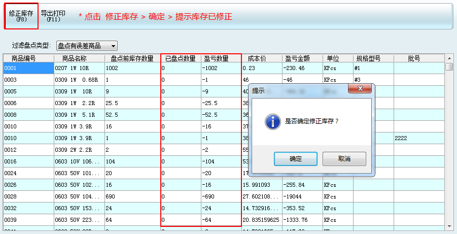 盤點前進入庫存查詢表,查看庫存產品的具體信息,與實際情況進行校對后,最終決定產品盤成多少。