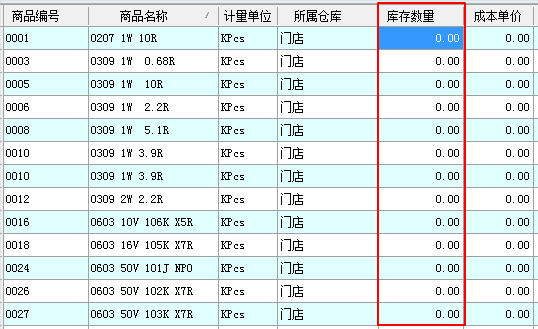 * 盤點后庫存數量為0