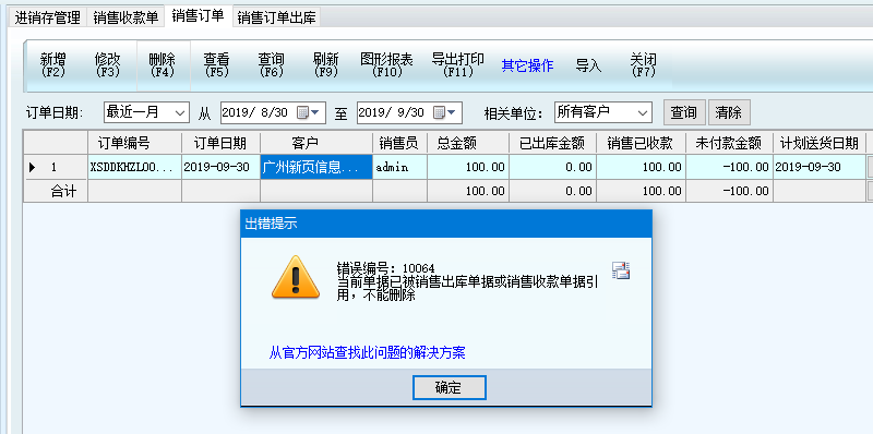 注意銷售訂單/采購訂單,刪除了,是無法再找回來的,請謹慎操作。