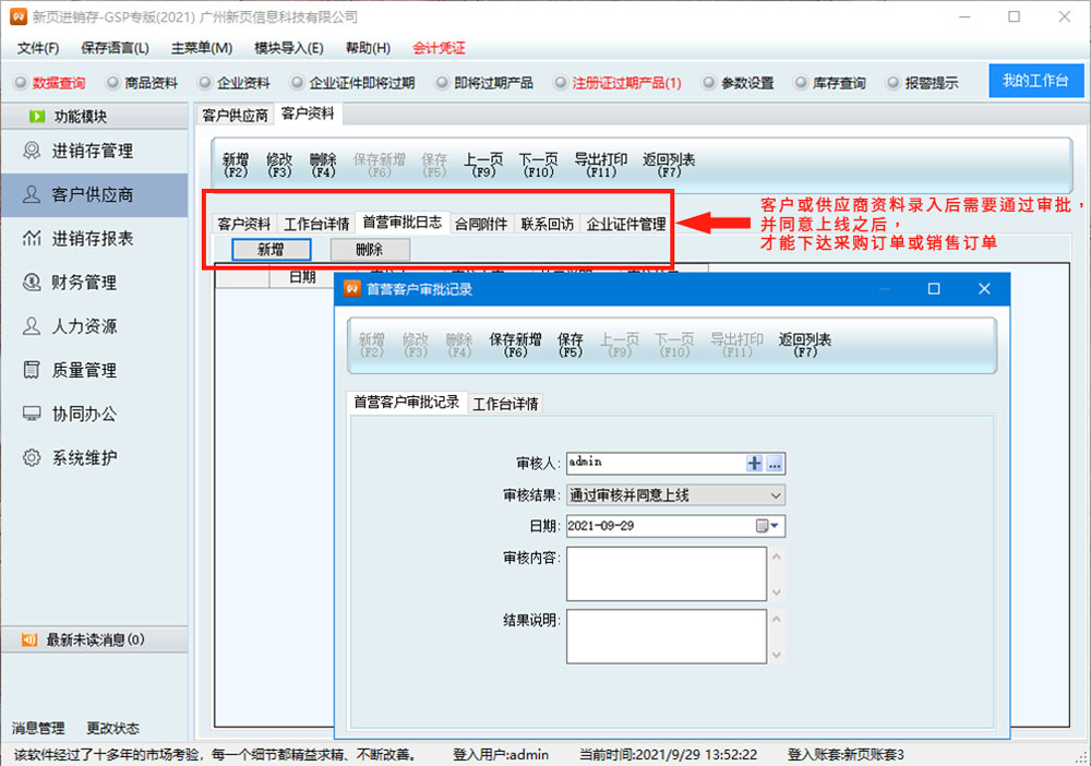可以快速錄入、管理客戶供應(yīng)商的首營審批資料;